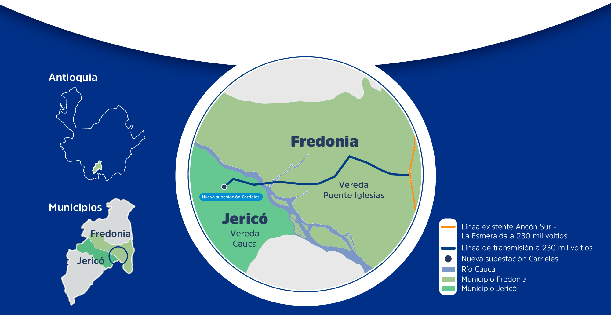 • Iniciamos la construcción del proyecto de Interconexión Carrieles en el departamento de Antioquia, una obra de transmisión de energía a alto voltaje que pasa por los municipios de Jericó y Fredonia.