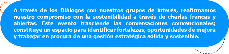 Representantes de diversos grupos de interés compartieron con nosotros en Diálogos, el quinto de los siete encuentros EnCONEXIÓN programados en 2023, en donde tuvimos la oportunidad de fortalecer nuestro relacionamiento y conversar de forma transparente en torno a propósitos comunes sobre los cuales tenemos una contribución relevante.